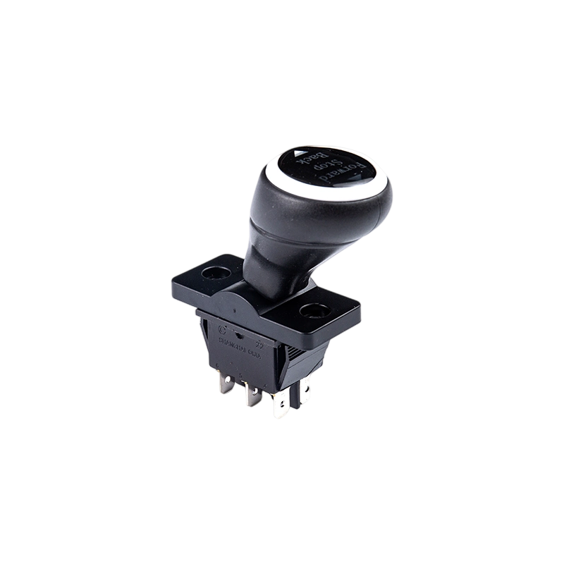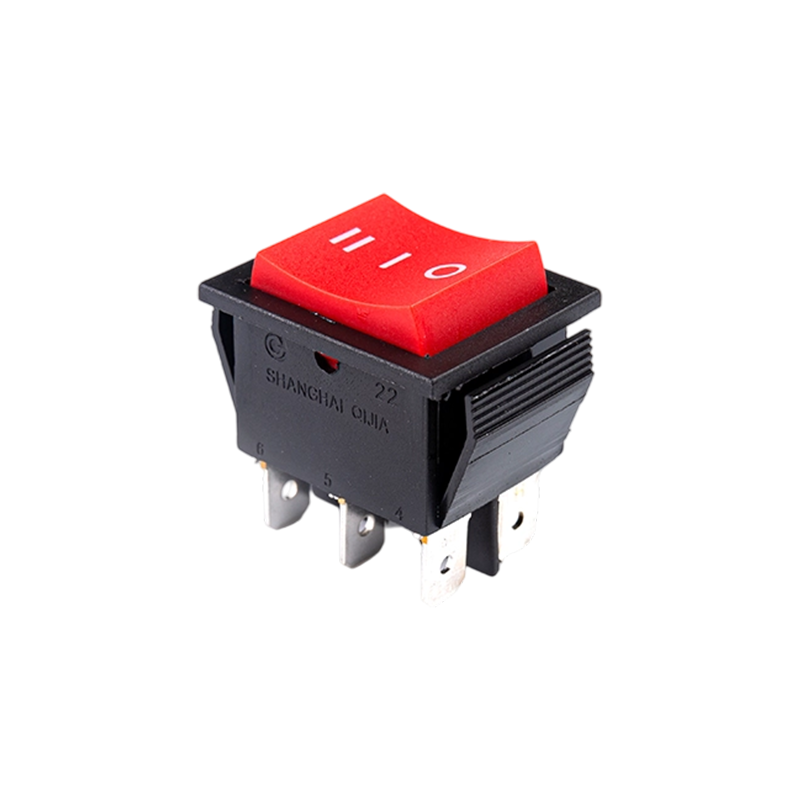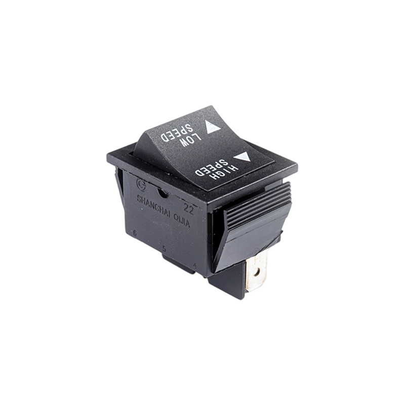 Kolmiasentoisessa R11-22-virtakytkimessä on käyttäjäystävällinen muotoilu ja selkeät merkinnät "High Speed", "STOP" ja "Low Speed" asetuksille, mikä tekee siitä ihanteellisen sovelluksiin, jotka vaativat muuttuvan nopeuden säätöä. Sen standardoitu liitinkokoonpano mahdollistaa helpon paneeliasennuksen, mikä tarjoaa erinomaisen monipuolisuuden eri laitteissa.
