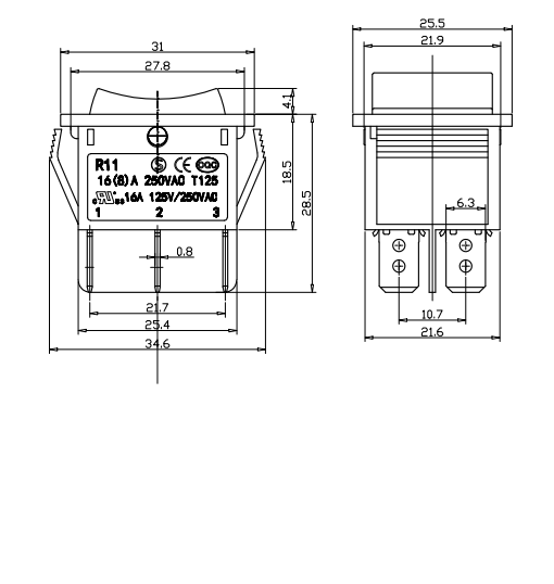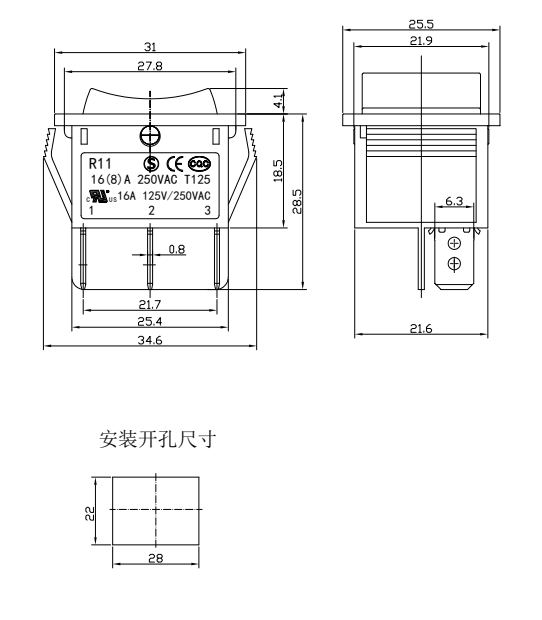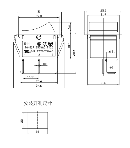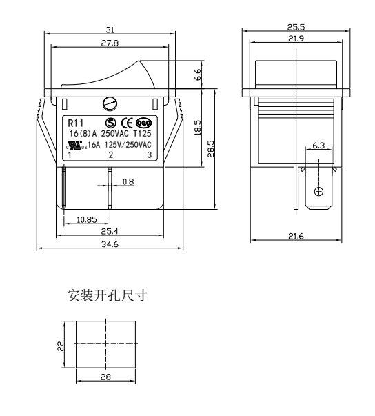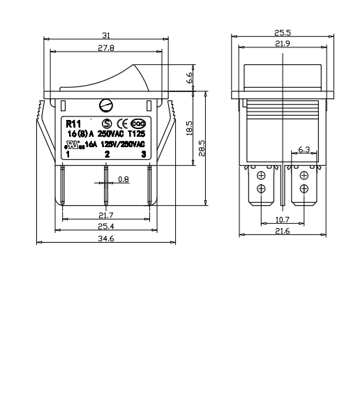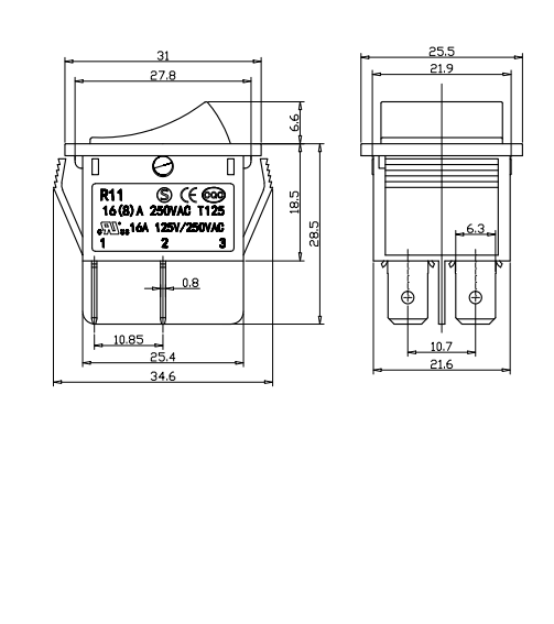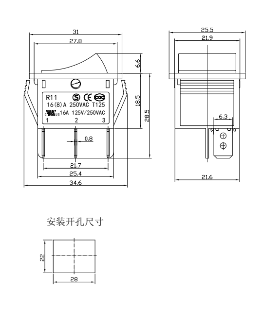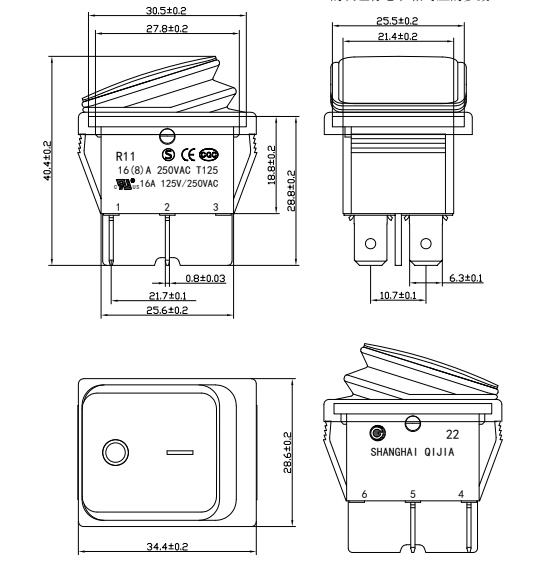 Shanghai Qijia Electronics Co., Ltd. Kotiin / Tuotteet / Keinukytkin / R11 keinukytkin / R11-22 keinukytkin
