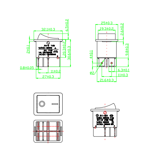 Shanghai Qijia Electronics Co., Ltd. Kotiin / Tuotteet / Keinukytkin / R11 keinukytkin / R11-82 Keinukytkin