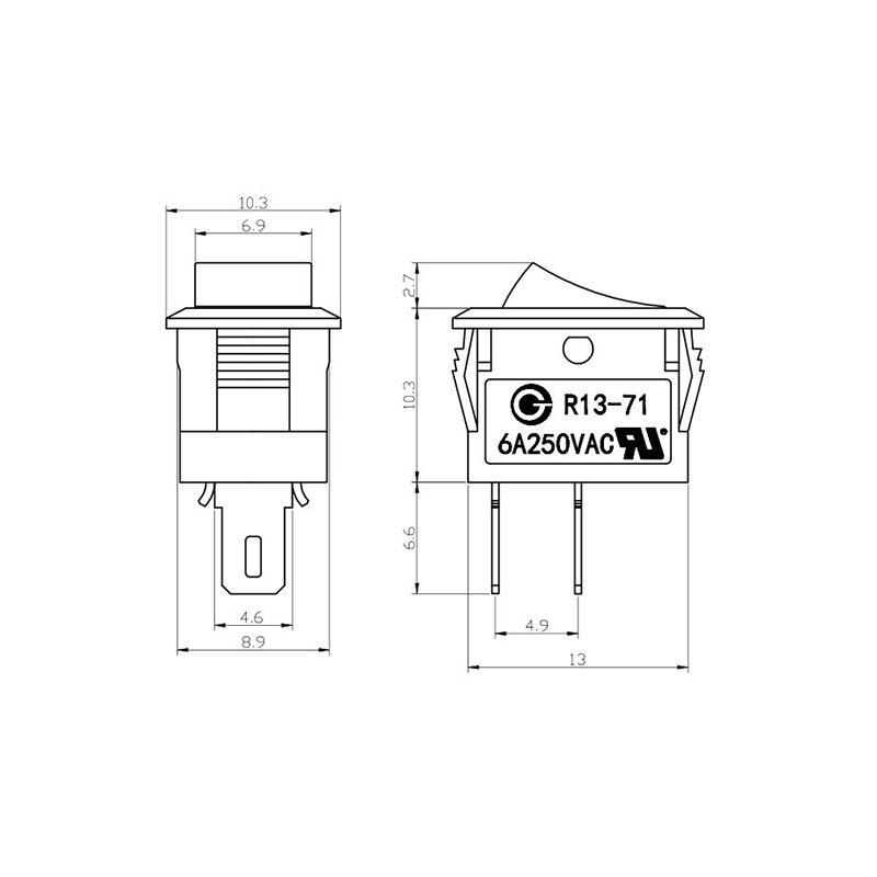 Shanghai Qijia Electronics Co., Ltd. Kotiin / Tuotteet / Keinukytkin / R13 keinukytkin / R13-71 Keinukytkin